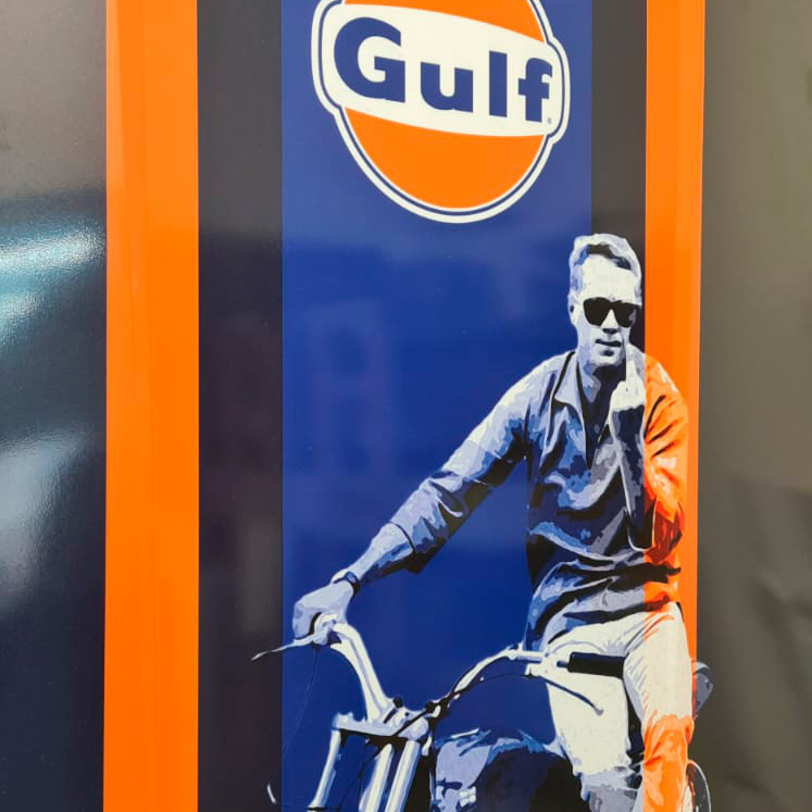 L’impression directe sur l’aluminium est protégé par un pelliculage haut de gamme brillant , donnant l’impression d’un vernis de carrosserie.