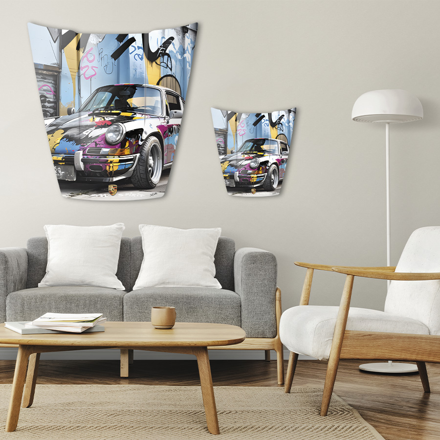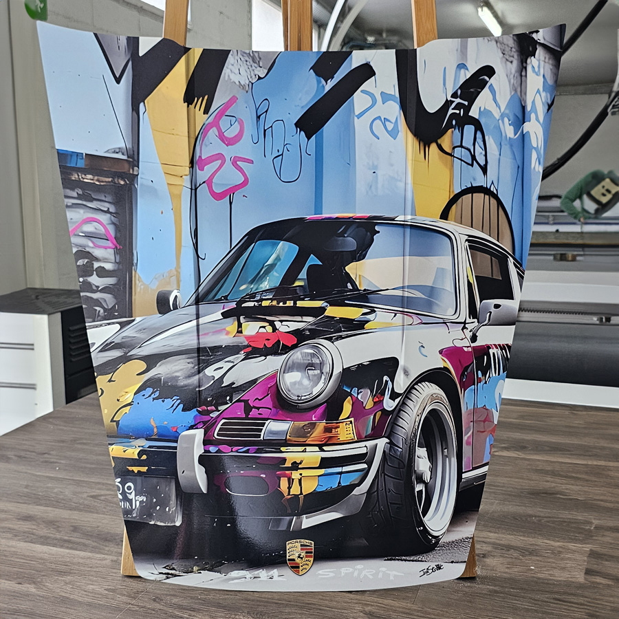 L’impression directe sur l’aluminium est protégé par un pelliculage haut de gamme brillant , donnant l’impression d’un vernis de carrosserie.