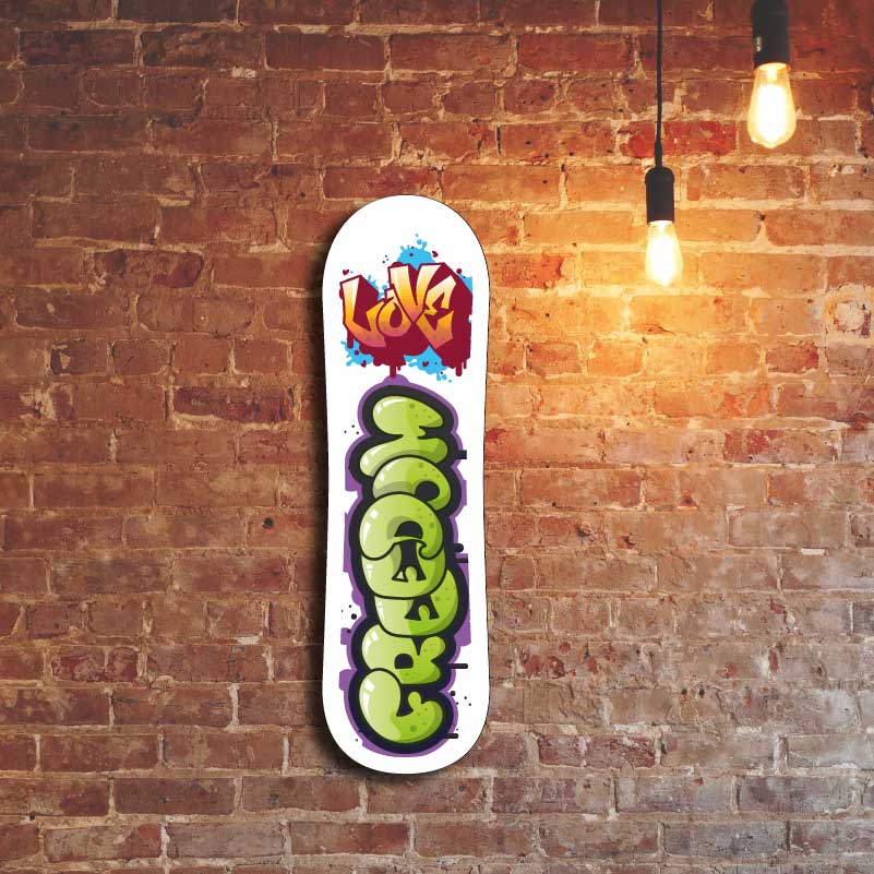 L’aluminium composite de 3mm est encré directement sur la surface du skateboard décoratif. Ce n’est pas un banal stickers !