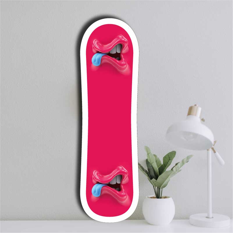 Les bords sont relevés créant l’effet d’une planche de skate. Une attache tableau est fournie si vous souhaitez l’accrocher au mur.